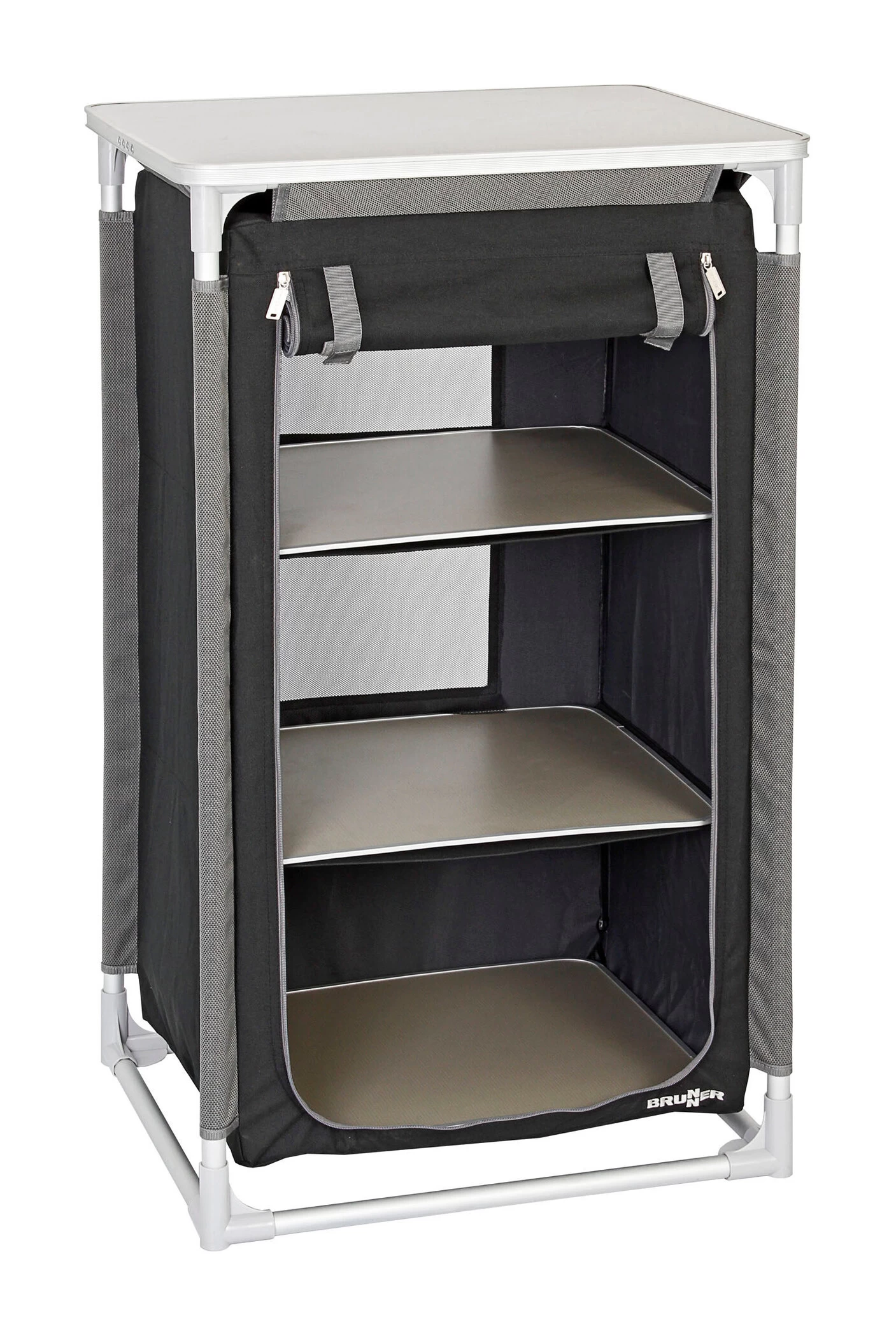 Met deze multifunctionele kast van Brunner kunt u uw kampeervakantie organiseren. Gemakkelijk op te zetten, biedt het drie ruime compartimenten voor voedsel, kleding en alle andere items die u wilt opbergen. Zo is orde leuk!