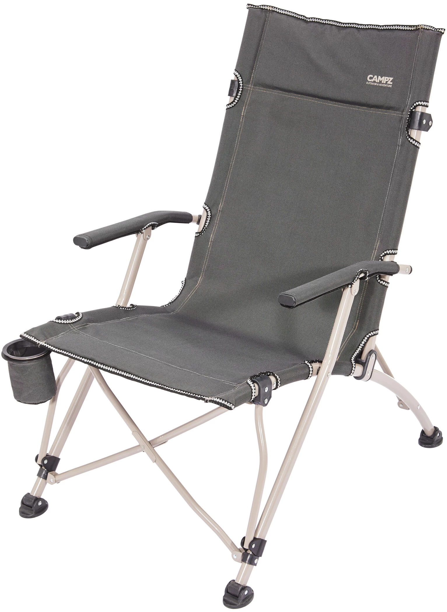 Deze CAMPZ klapstoel is bijzonder comfortabel wanneer je even wilt uitrusten met een mooi boek en een koud drankje. De extra diepe zitting maakt deze stoel vooral comfortabel voor mensen met lange benen. De hoge rug ondersteunt je schouders en hoofd, zodat je lang achterover kunt leunen en ontspannen. Dankzij de praktische drankjeshouder, hoef je niet op te staan om van je favoriete drankje te genieten.