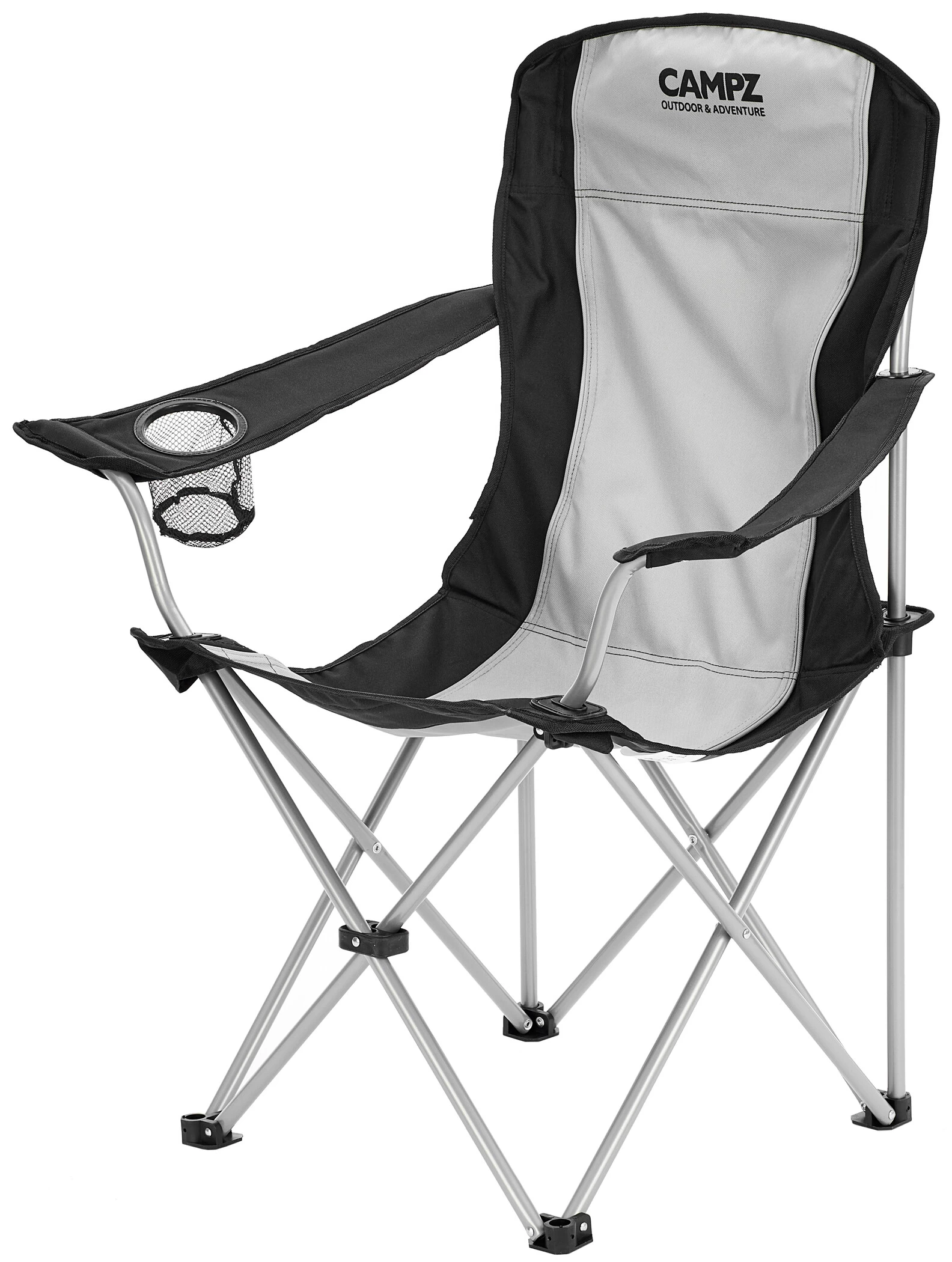 Praktische campingstoel. Deze comfortabele campingstoel van CAMPZ is de perfecte metgezel voor festivals, kampeertrips en al je andere outdoor avonturen. Hij kan binnen enkele seconden worden opgezet en je kunt achterover leunen en ontspannen met een drankje. De praktische flessenhouder houdt altijd een plekje vrij voor je favoriete drankje. Deze stoel combineert stabiliteit met een hoge mate van comfort: de robuuste stof past zich aan je lichaam aan en de versterkte poten zakken nauwelijks weg, zelfs niet op een zachte ondergrond. Deze campingstoel kan in een paar stappen compact worden opgevouwen en opgeborgen in de meegeleverde transporttas.