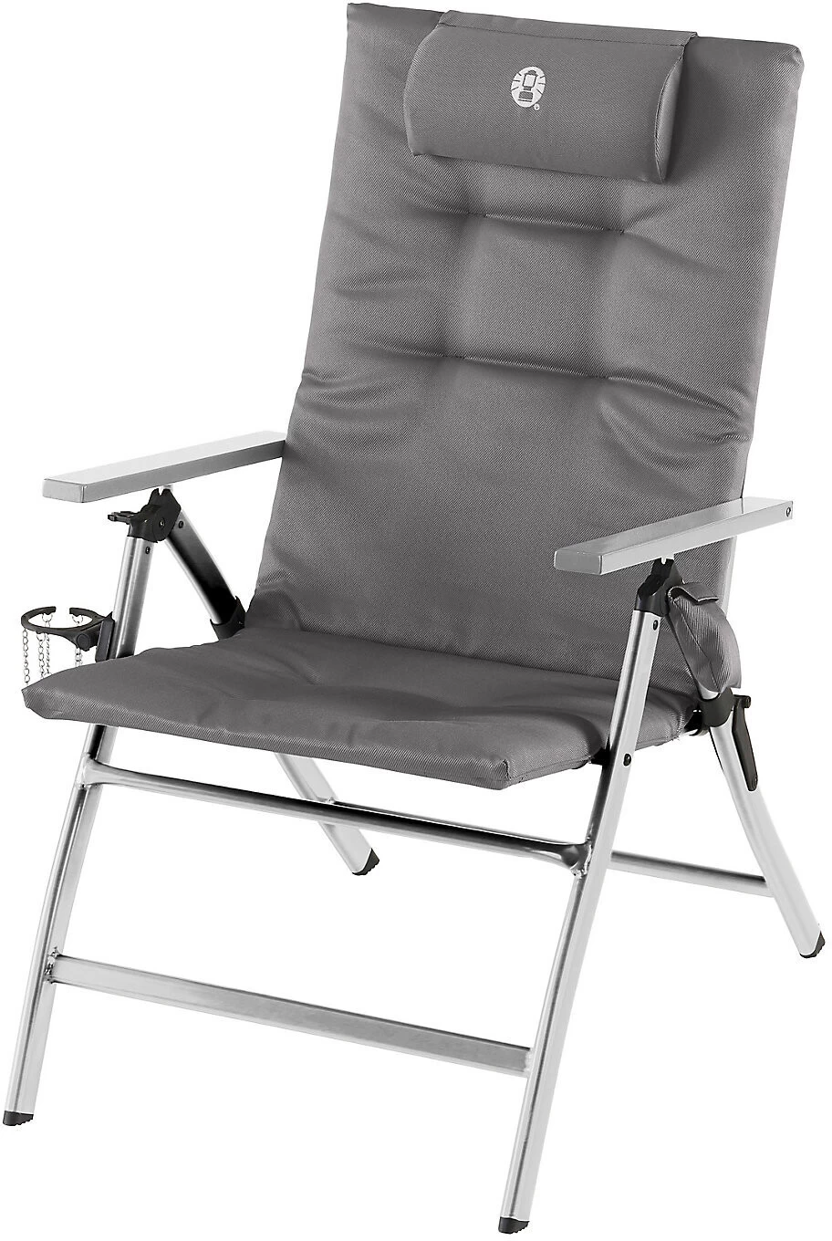 Comfortabele campingstoel met stevige, ondersteunende armleuning en hoofdkussen voor extra comfort. De gewatteerde zitting en rugleuning maken de stoel echt comfortabel en zijn, in combinatie met de ligfunctie, perfect voor een lekker middagdutje in de tuin of op de camping. De bekerhouder is aan de zijkant geïntegreerd, zodat hij niet stoort bij het zitten en geen onnodige ruimte inneemt. Het lichte aluminium frame, de vouwfunctie en de meegeleverde draagtas maken hem gemakkelijk te vervoeren en nodigen uit tot een uitstapje.