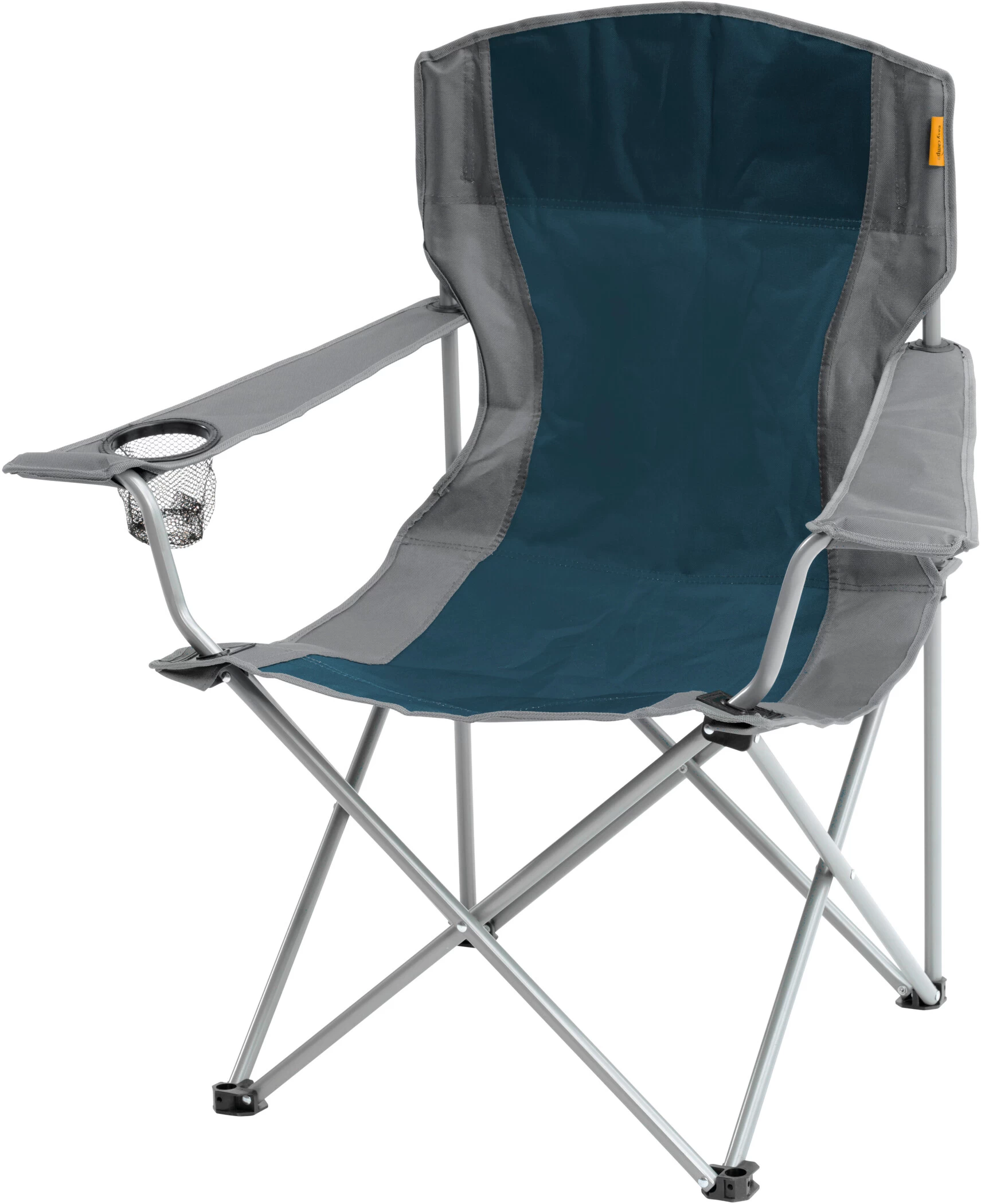 Deze klassieke fauteuil is zowel stevig en comfortabel en is centraal voorzien van een strook in nachtblauwe kleur. Er is een fleshouder voor drankjes voorzien in de armsteun. De stoel kan worden opgevouwen en opengevouwen in een paar seconden.