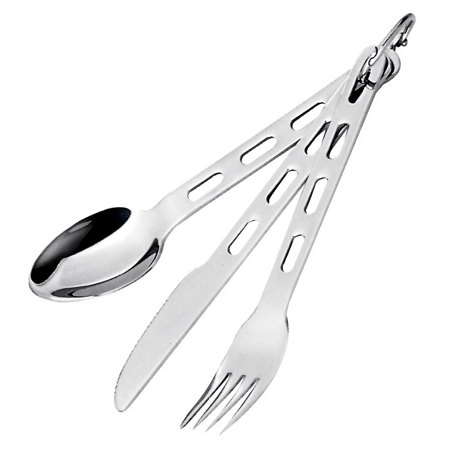 Prachtig roestvrij stalen bestek op een praktische ring voor buiten, op reis en op de camping: 3,6 x 3 cm