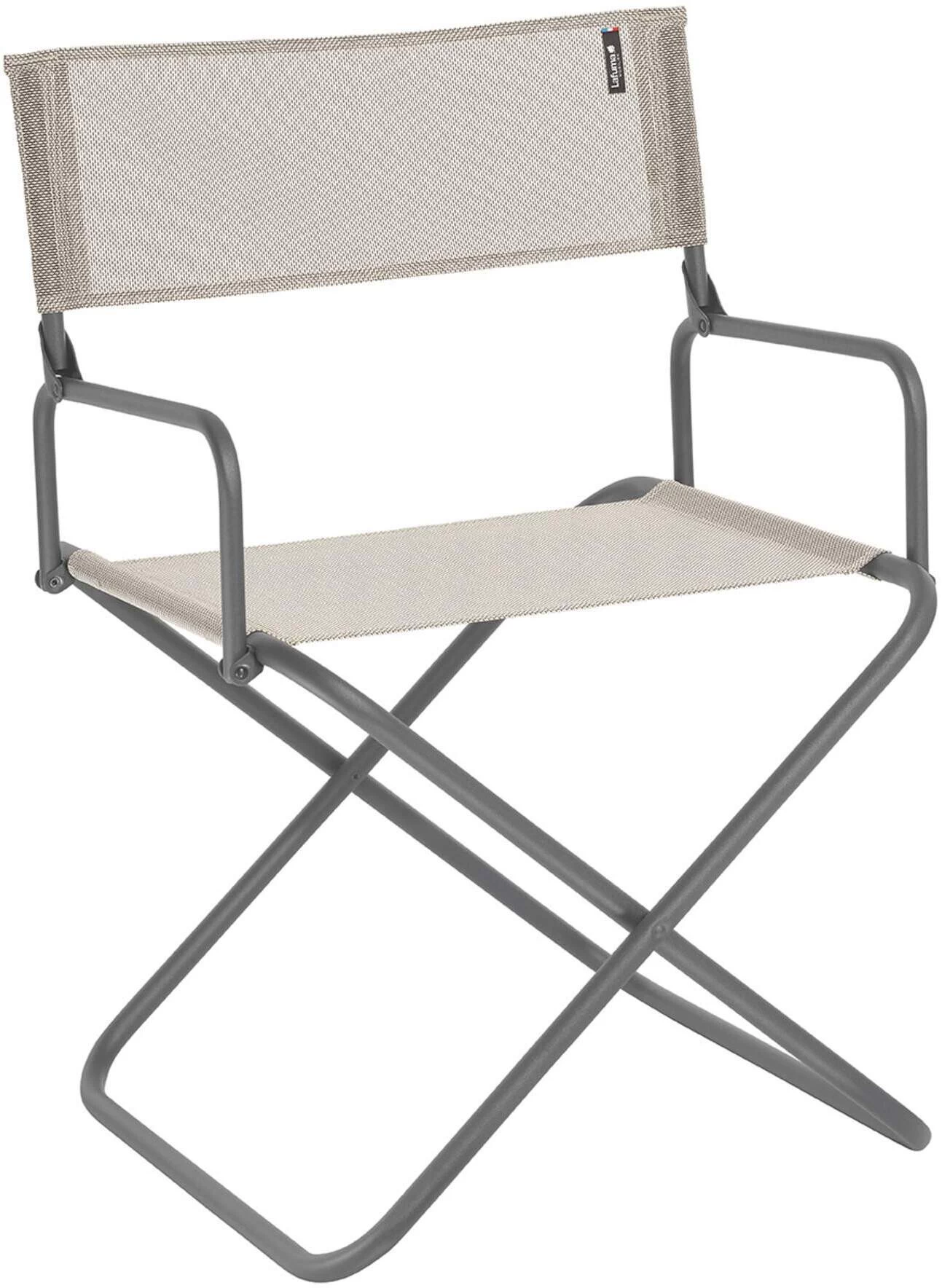 The large folding director’s chair FGX XL by Lafuma has a frame made of painted steel tubes and is equipped with a seam-reinforced and UV-resistant cover.