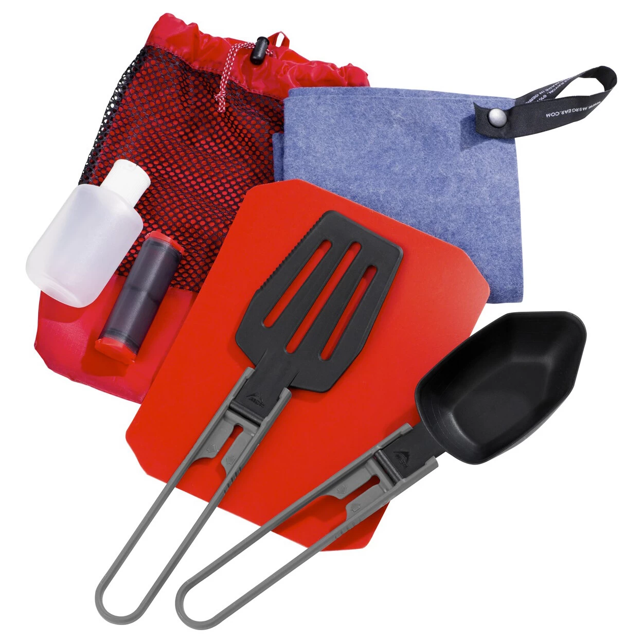 Vouwlepel, Spatel, Utralight snijplank, Peper en zoutstrooier, Sproeifles en theedoekje