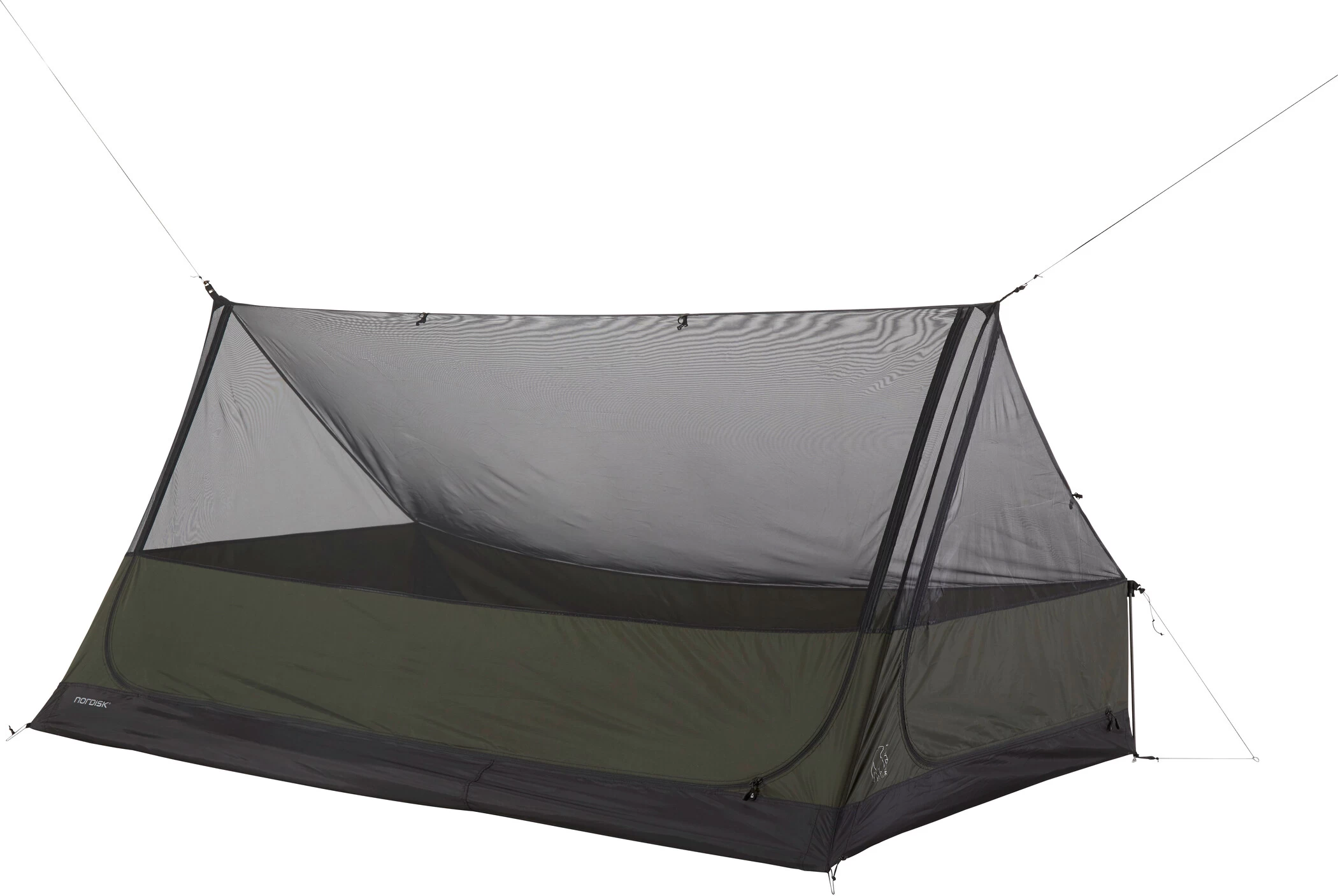 Troms Mesh Cabin is een bijna onmisbaar apparaat als u wilt overnachten in de open lucht of – beschermd tegen insecten – onder een dekzeil. Om de tent te beschermen tegen het weer, heeft hij een 40 cm hoge wand van 15D ripstop nylon aan alle zijden. De Tarp biedt voldoende ruimte voor twee personen met uitrusting. Het kan worden gebouwd met twee wandelstokken, takken of tussen twee bomen. Er zijn slechts 6 pinnen nodig voor de opstelling en het is compatibel met alle Nordisk Voss tarpvarianten. De tent heeft twee ingangen, aan de achterkant en aan de zijkant, dus hij past bij de meest populaire zeilontwerpen.