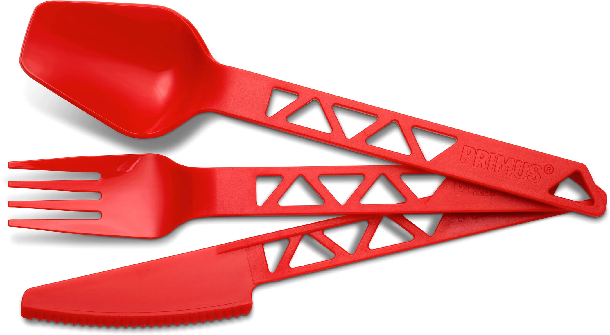 Vork, mes en lepel van BPA-vrij Tritan kunststof. Een echt vedergewicht! Met praktische verpakkingsband.