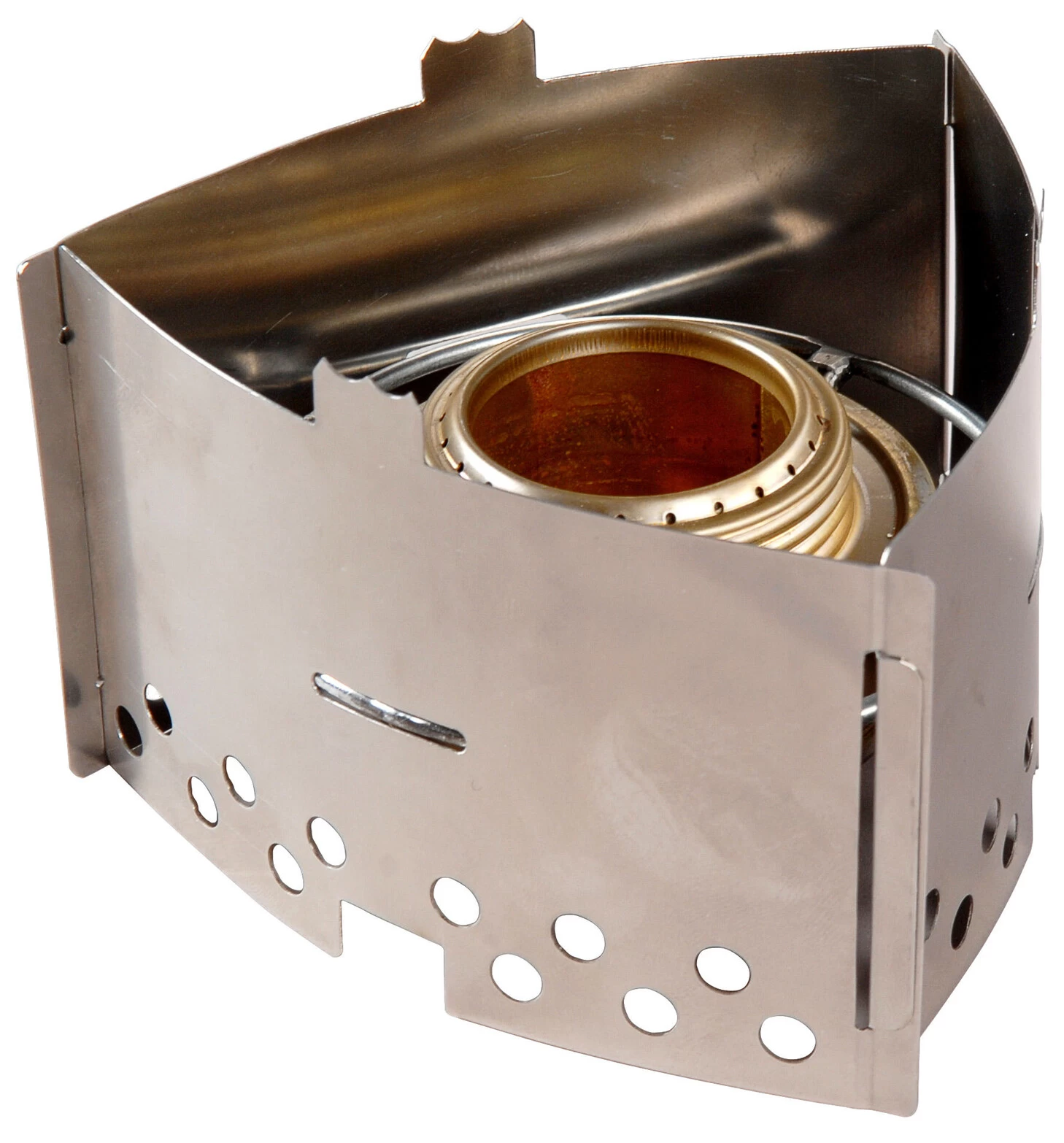 De Trangia Driehoek bestaat uit een driedelig frame met een roestvrijstalen branderring en een transporttas. Het kan worden gebruikt met een spiritus-, gas- of gele brander (brander niet inbegrepen).